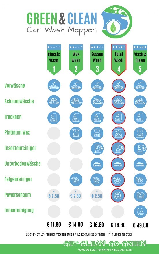 Bei Green & Clean finden Sie immer die richtige Wäsche für Ihr Auto. Ganz egal, ob Sie nur mal schnell waschen wollen oder Sie eine Pflegebehandlung vom Feinsten wünschen.